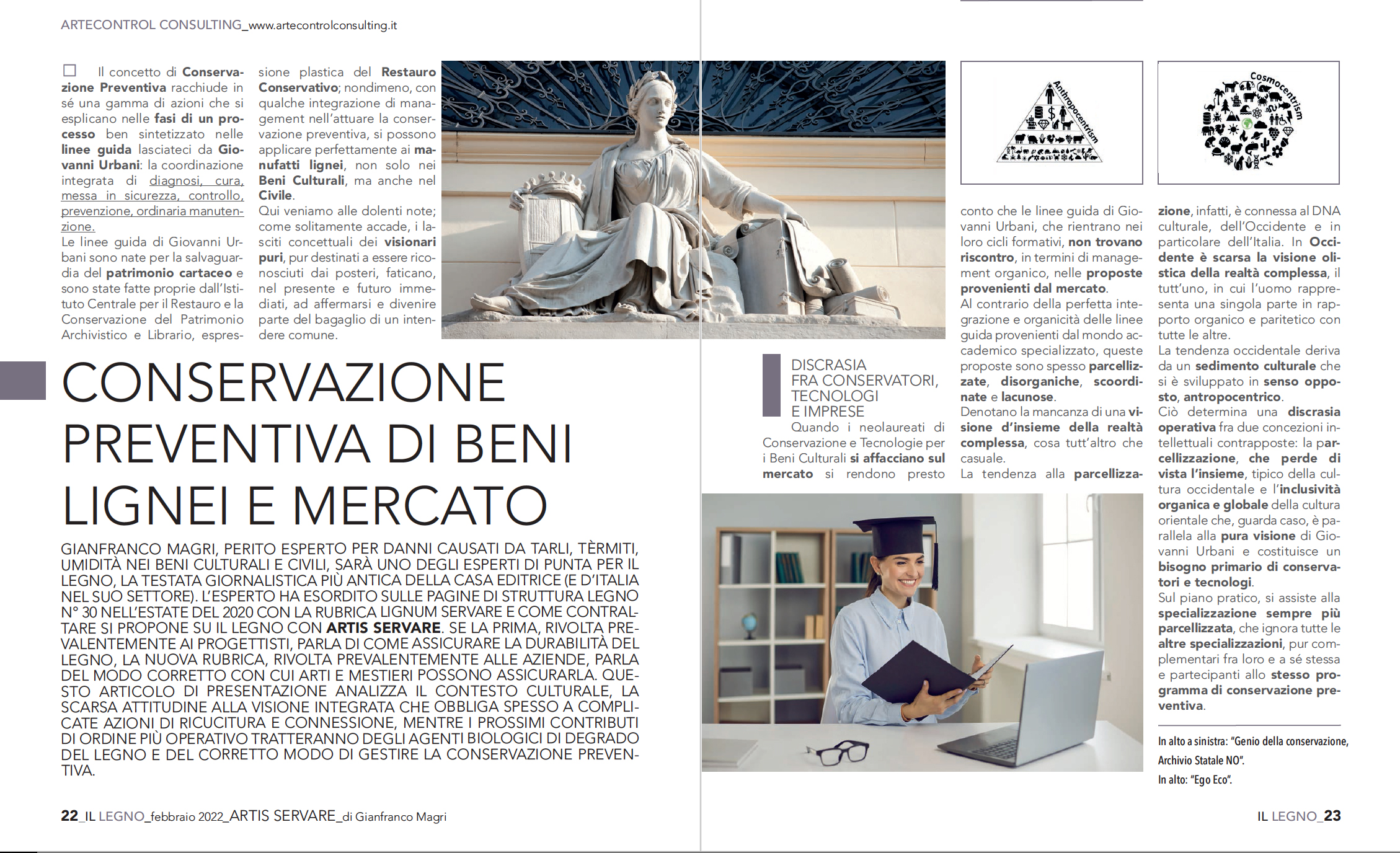 Inaugura, sul n. 371 di Febbraio 2022, una nuova rubrica fissa a nostra cura, ARTIS SERVARE, che, con la formula di estratti dai manuali di Conservazione Preventiva si rivolge a Enti, Industrie, Artigiani, Conservatori, Docenti e Discenti Universitari e di Università e Accademie di Belle Arti.
